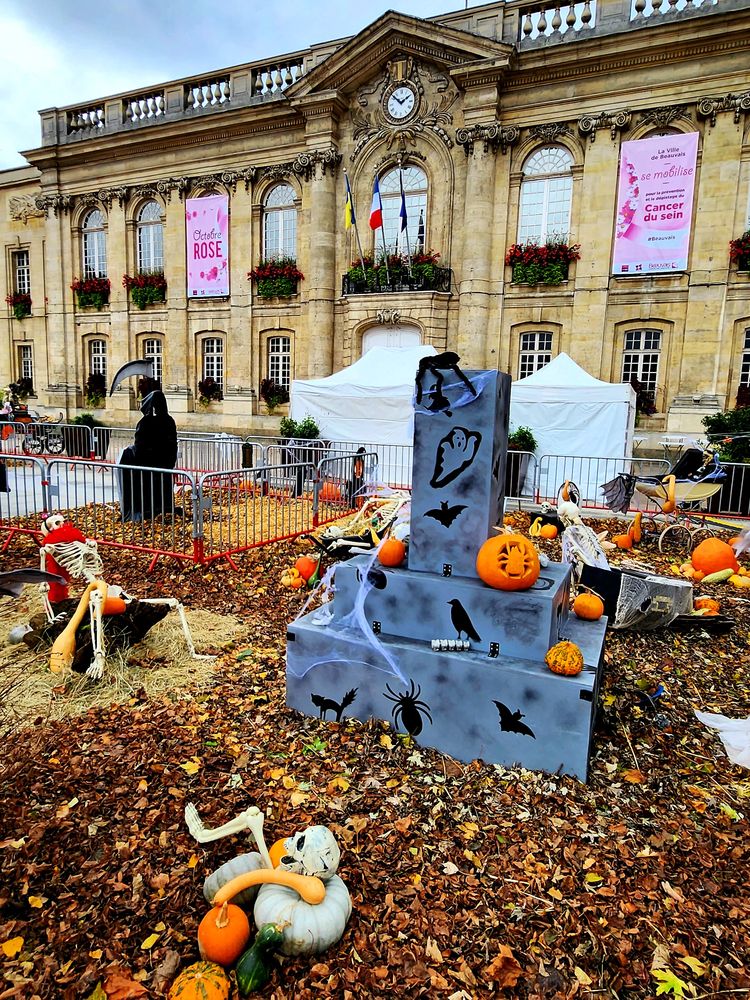 C’est la période d’Halloween, la décoration de la place est au rendez-vous.